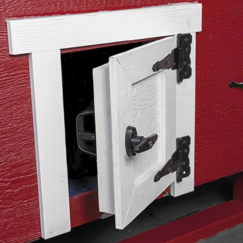 • Lockable latches are included on the coop egg box, mandoor, and chicken door for added security.