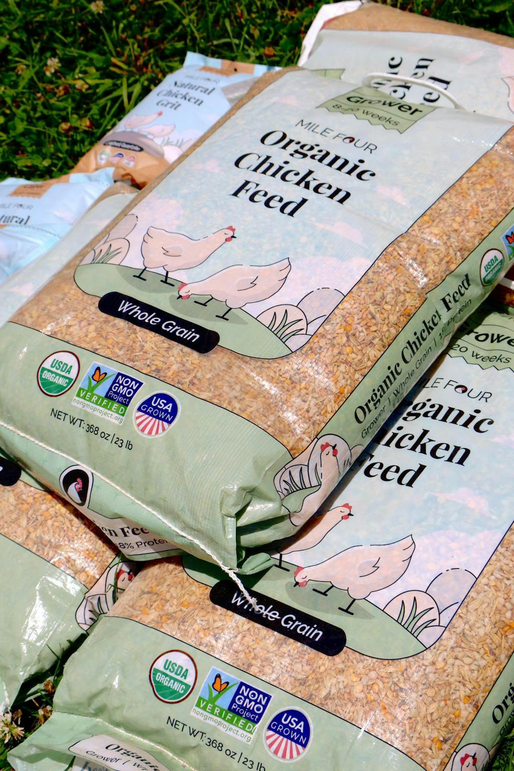 Whole Grain: Cracked grains & unprocessed ingredients in their natural state resulting in a granola-like texture large enough for chickens to grab.